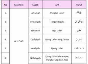 Laqabul huruf berarti sandaran atau julukan huruf yang dinisbatkan pada tempat keluarnya huruf (makhraj) dalam Ilmu Tajwid, yang fungsinya untuk mengidentifikasi di mana bunyi huruf tersebut berasal, seperti laqabul dari Al-Halq (tenggorokan), Al-Lisan (lidah), Asy-Syafatain (dua bibir), Al-Jauf (rongga mulut), dan Al-Khaisyum (pangkal hidung).